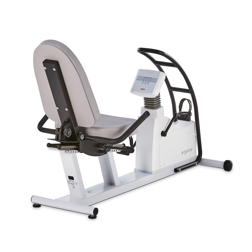 Konstruiert für ein zulässiges Patientengewicht von bis zu 300 kg, ermöglicht das Recumbent-Ergometer ergoselect 600 die Durchführung von Ergometrien und Herz-Kreislauftrainings, auch mit schwer adipösen Patienten. Aber auch älteren oder behinderten Patienten steht mit dem ergoline-Recumbent-Ergometer die richtige Belastungs- und Trainingseinheit zur Verfügung. Details wie die 3-fach verstellbare Rückenlehne, Spezial-Pedalschuhe mit einstellbarem Tretabstand und Zusatzpolster, die den Abstand zwischen Tretachse und Sitzfläche zusätzlich vergrößern, ermöglichen eine optimale Anpassung an den jeweiligen Patienten.