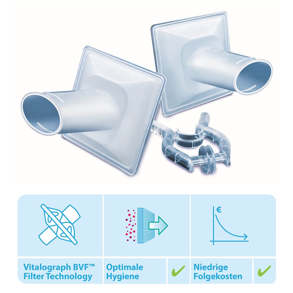 Der Vitalograph ECO-BVF™ Filter wurde wirtschaftlich und funktionell vor allem für Allgemein- und Betriebsärzte, arbeitsmedizinische Dienste und Kliniken konzipiert. Neben Vitalograph ist er auch zur Verwendung auf Spirometern von MIR, Schiller (SP-200/SP-20), Micro Medical, Cosmed und Vistec geeignet. Der ECO-BVF ist das Resultat konsequenter Weiterentwicklung unserer etablierten Lufu-Filter, basierend auf den Erfahrungen und Anregungen professioneller Anwender und Experten weltweit.