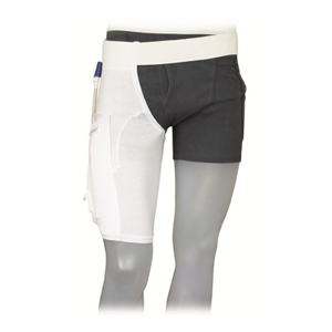 Bei der Premium Einbein-Hose aus weichem vorgewaschenem Baumwollmischgewebe mit integrierter Beinbeuteltasche sind im breiten elastischen Hüftgürtel Silikonstreifen eingearbeitet, die einen bestmöglichen Halt der Einbeinhose selbst bei gefülltem Beinbeutel gewährleisten. Durch den individuell einstellbaren Klettverschluss des Hüftgürtels gewährleistet dieses Produkt zudem einen hohen Tragekomfort.