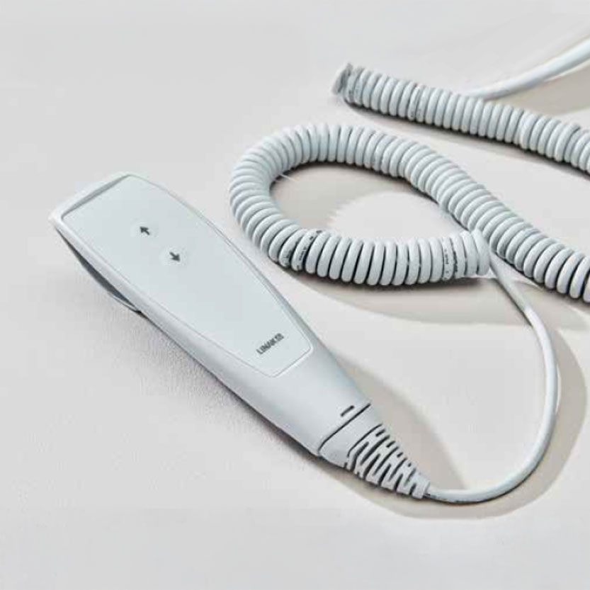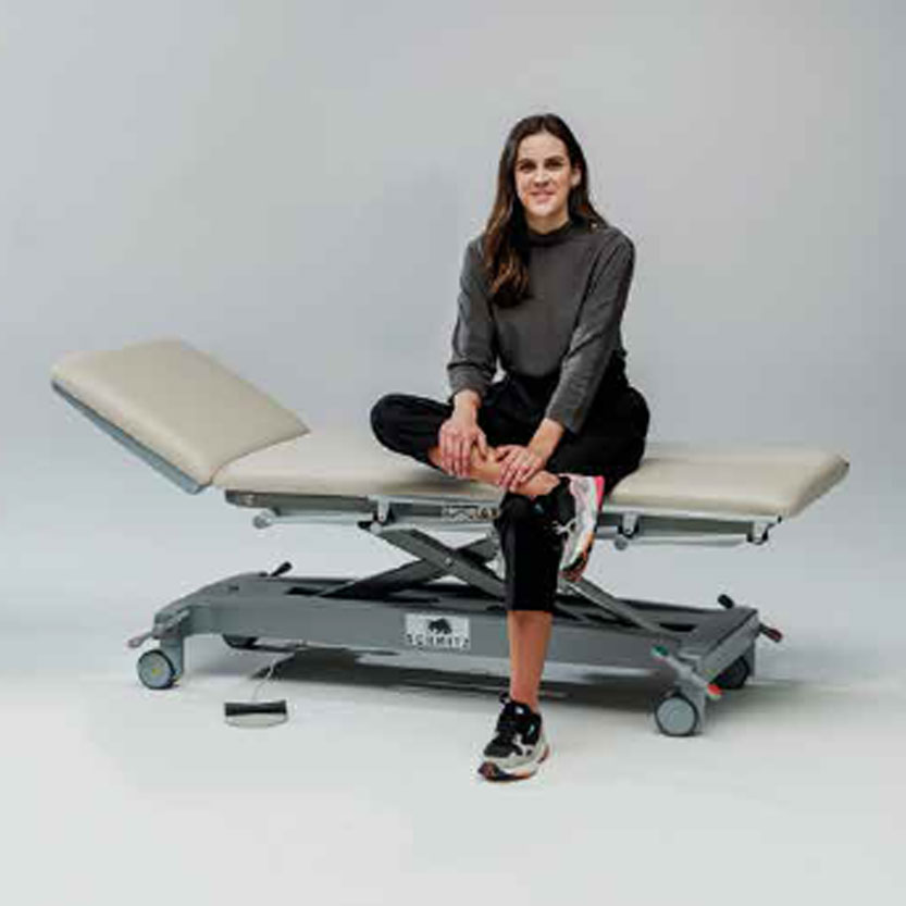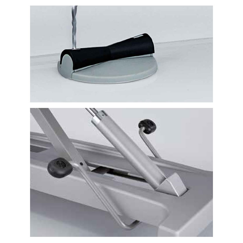 Die varimed® Untersuchungs- u. Behandlungsliege hat eine elektromotorische Höhenverstellung von 500 bis 920 mm über Fußbedienung. Ein Sperrschalter aktiviert und deaktiviert das Bedienelement. Aus Sicherheitsgründen wird die Funktion der Höhenverstellbarkeit mittels Doppelklick auf Handoder Fußbedienung ausgelöst.