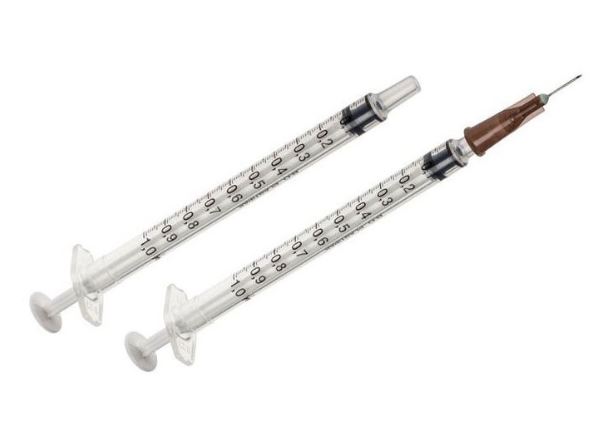 BD Plastipak™ Sub-Q kleinvol., 1 ml, 0,01 ml Grad., 26 G 1/2, 0,45 x 12,7 mm, br. Kappe (100 Stck) , Zylinder & Kolben: PP, sep. Kanüle