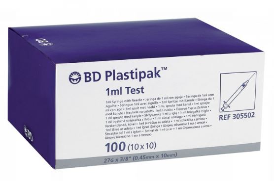 BD Plastipak™ Test kleinvol., 1 ml, 0,01 ml Grad., 27 G 3/8, 0,40 x 10 mm, gr. Kappe (100 Stck) , Zylind. & Kolben: PP, sep. Kurzschliffkan.