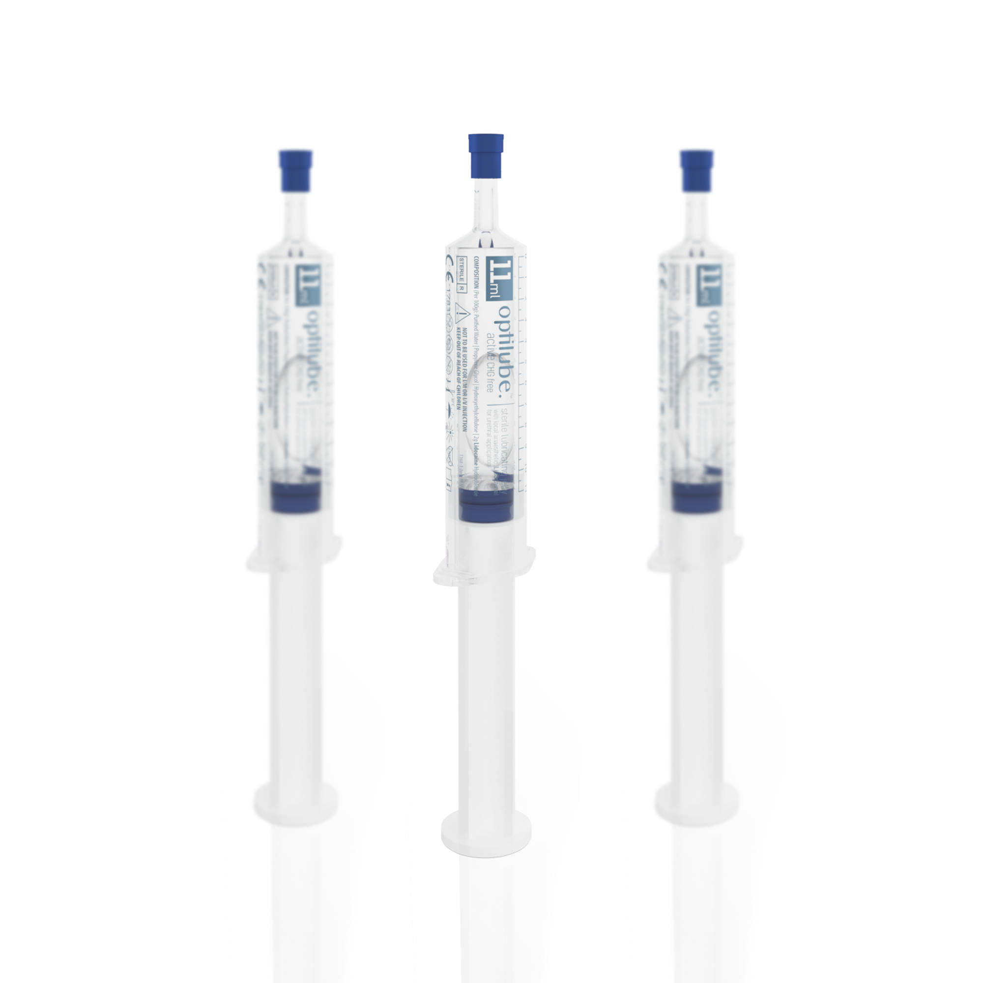 optiLube active CHGFree™ steht zur Verfügung in sterilen Fertigspritzen mit 6ml oder 11ml Inhalt und Verkaufseinheiten mit 10 oder 100 Spritzen.