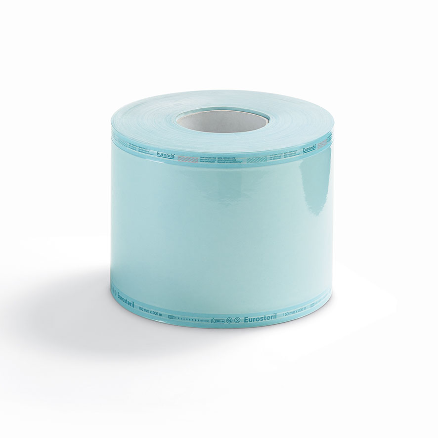 Eurosteril sterilization film is available in rolls up to 30 cm wide in a flat version or with a fold for bulky material. The length is cut individually. A contrast indicator is integrated for control purposes. It indicates whether steam sterilization treatment has taken place.