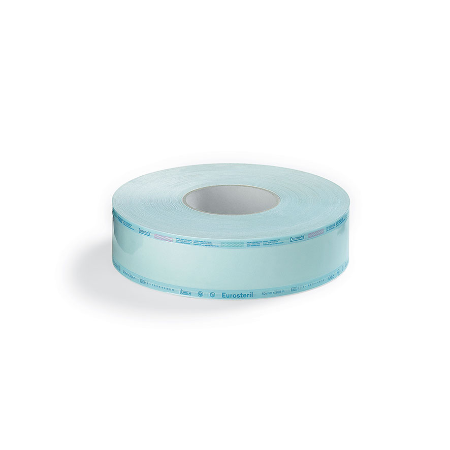 Eurosteril sterilization film is available in rolls up to 30 cm wide in a flat version or with a fold for bulky material. The length is cut individually. A contrast indicator is integrated for control purposes. It indicates whether steam sterilization treatment has taken place.