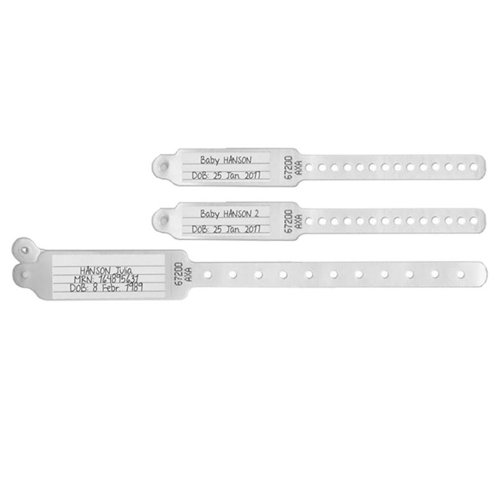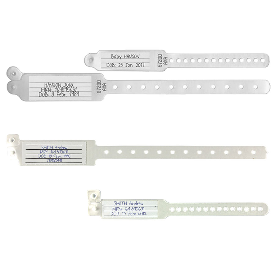 Name tapes can be used in obstetrics, surgical preparation, geriatrics, pathology or generally in patient admissions. Choose depending on the area of ??application and goal: name tape with insert card or for direct inscription, for babies, children or adults, made of PVC or PVC-free.