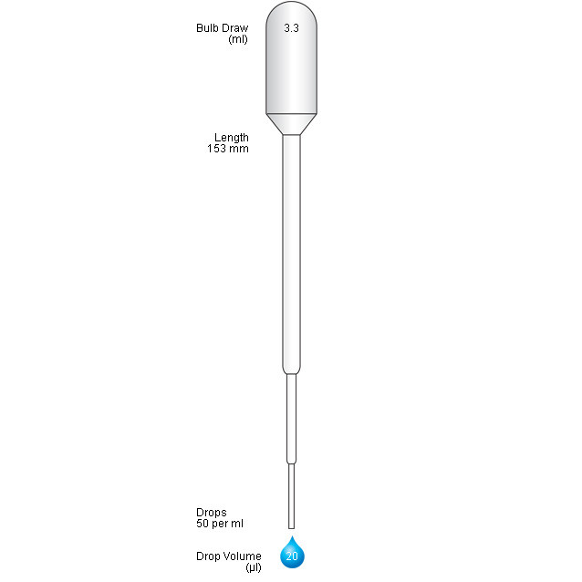 because they are made from soft, low-density polyethylene, they can be recycled when used with non-hazardous samples - Length: 153 mm, capacity: 3.3 ml, drops per ml: 50, drop volume: 20 µl