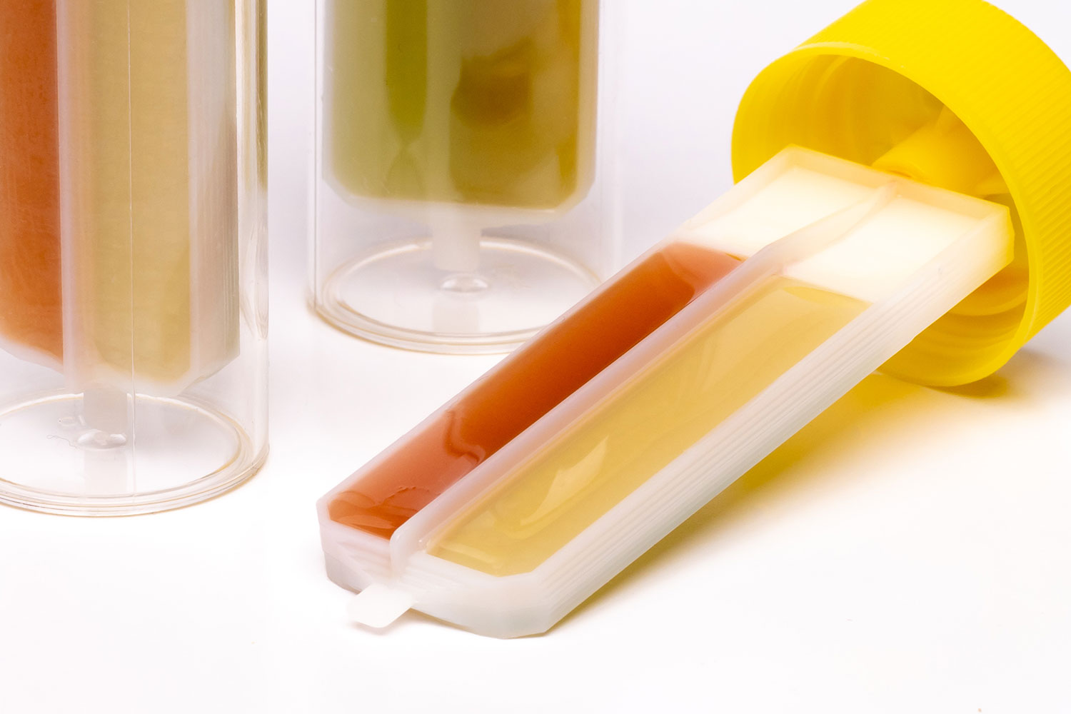 UrinAX consists of a closed container with a 2-sided agar medium carrier with 3 media: